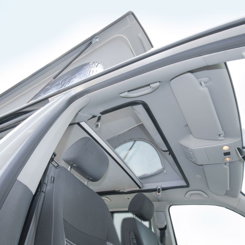 Die Dachschale ist stabil gefertigt und bleibt trotzdem angenehm flach. Außen ist sie ohne Profil gehalten, damit sich flexible Solarmodule direkt und sauber verkleben lassen. Durch die integrierte, schlanke Form wirkt das Dach wie aus einem Guss und fährt sich angenehm leise.