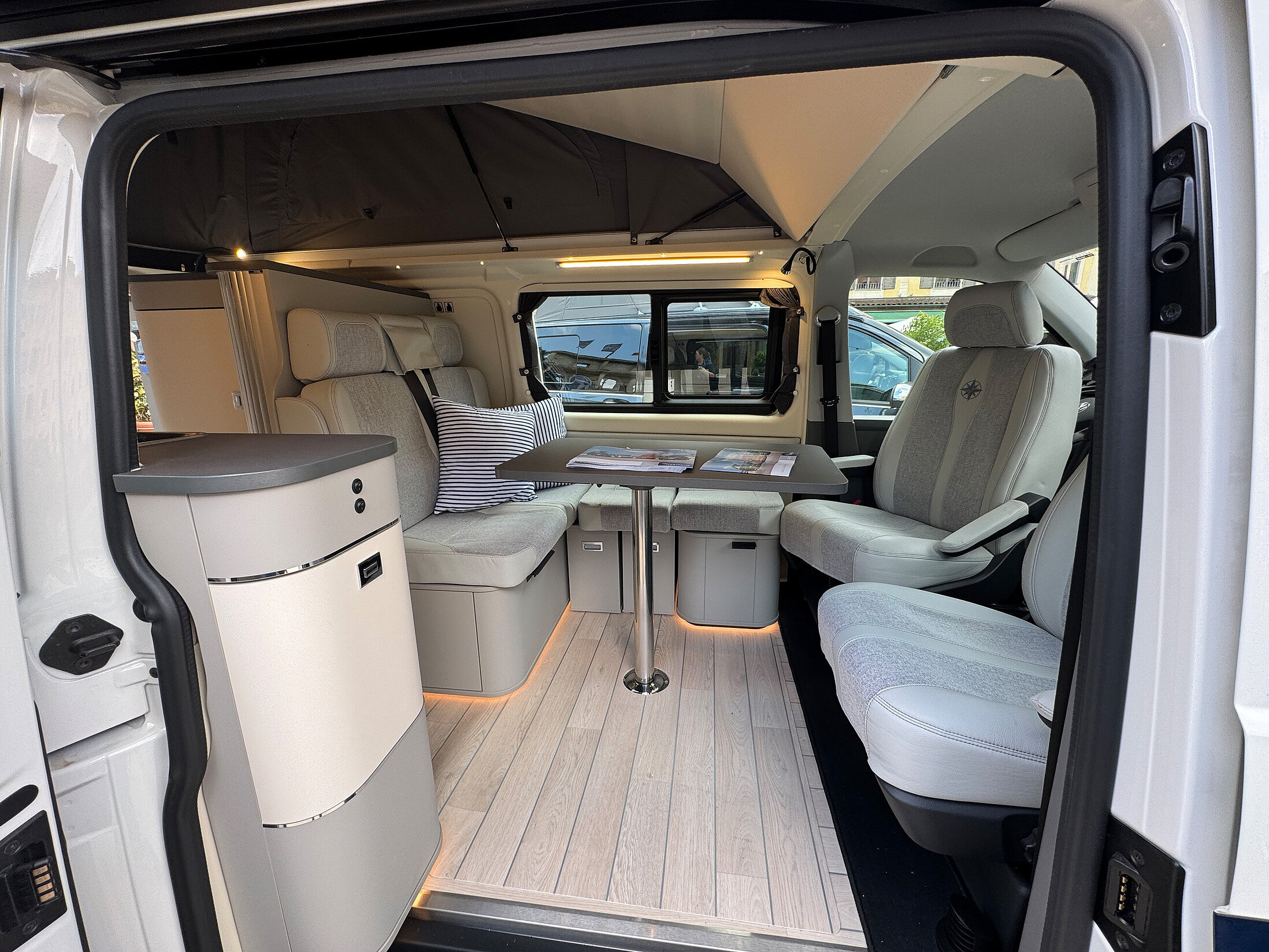 Darunter der Westfalia Columbus 640E mit cleverem Grundriss, mehr Stauraum und optimierter Bordtechnik. Typisch Westfalia: durchdacht, funktional – und trotzdem gemütlich.