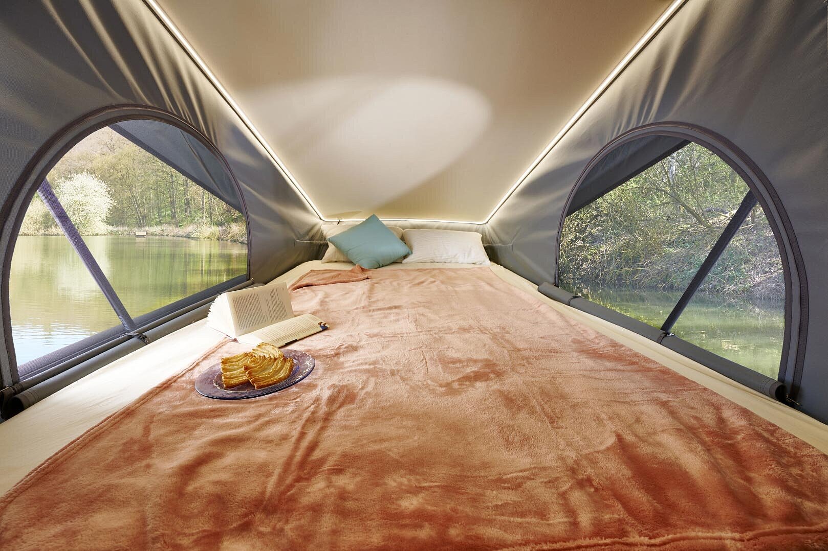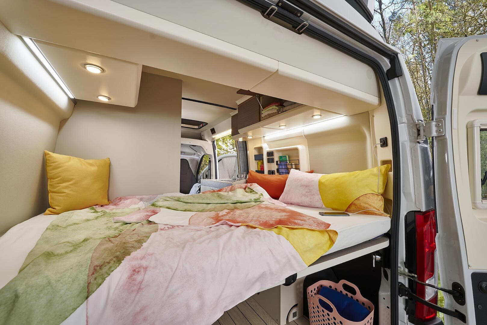Für zusätzlichen Schlafplatz bietet Westfalia optional ein manuelles oder elektrisches Aufstelldach mit großzügiger Liegefläche. So entsteht im Handumdrehen Raum für bis zu vier Personen – ideal für Familien oder Paare mit Abenteuerlust.