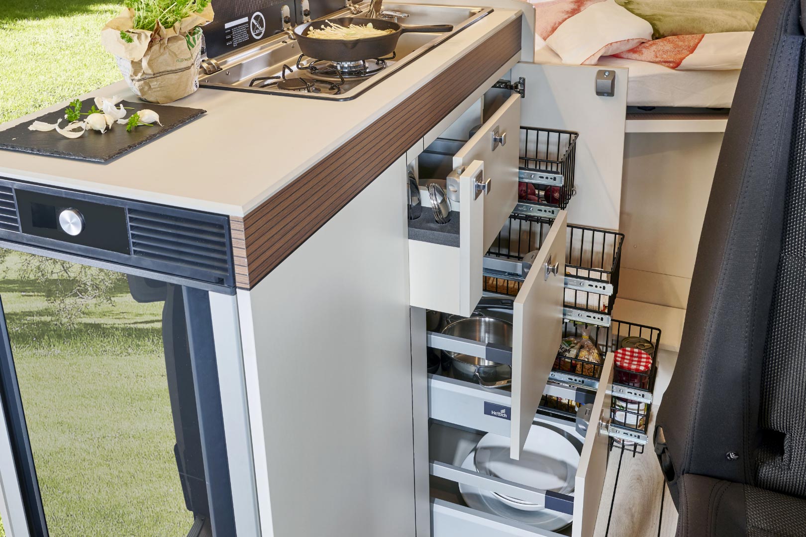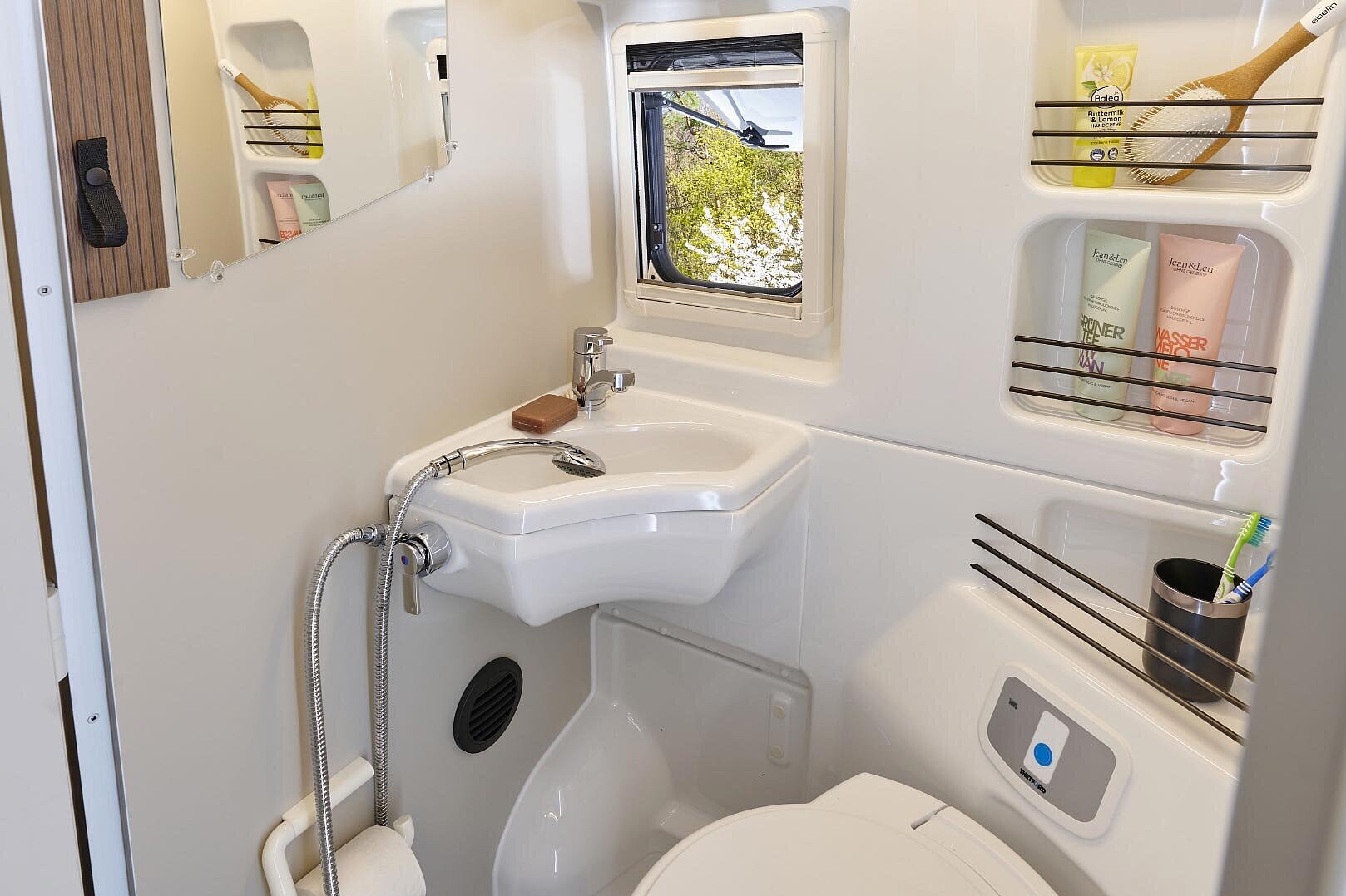 - Optionale Ausstattung: Aufstelldach (manuell/elektrisch), Winterpaket mit Fußbodenheizung und beheizter Duschwanne, Skyview-Panoramadach, 350-Watt-Solarmodul